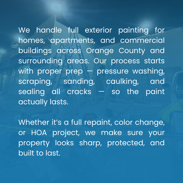 We help homeowners in Huntington Beach, Fountain Valley, Costa Mesa, Westminster, Garden Grove, and nearby Orange County cities with repair-first painting services for better-looking results.